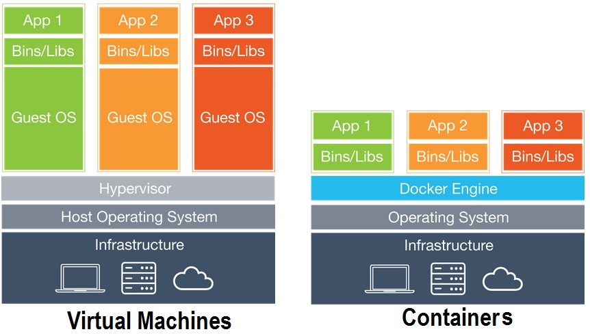 가상머신(Virtual Machine)은 하이퍼바이저(Hypervisor)를 이용해 여러개의 운영체제를 하나의 호스트에서 생성해서 사용하는 방식으로 각 게스트 운영체제는 다른 게스트 운영체제와는 완전히 독립된 공간과 시스템 자원을 할당받아 사용합니다.