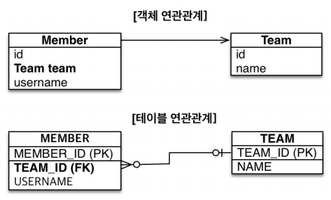 RDB에서는 연관관계가 있을 때 외래 키로 참조하지만, 자바에서는 객체참조를 통해서 이루어진다.
