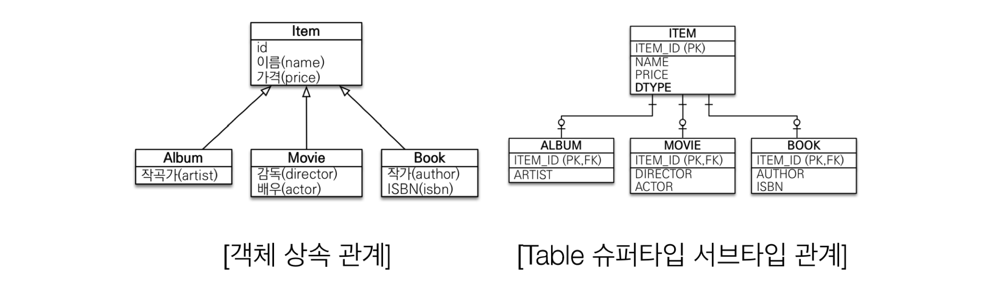 - 하위 타입문제 (RDB 에는 상속의 개념이 없음)